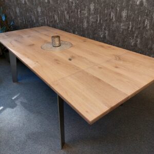 Auf Wunsch kann die Tischplatte mit Verlängerungen in Form von Ansteckplatten angefertigt werden.
